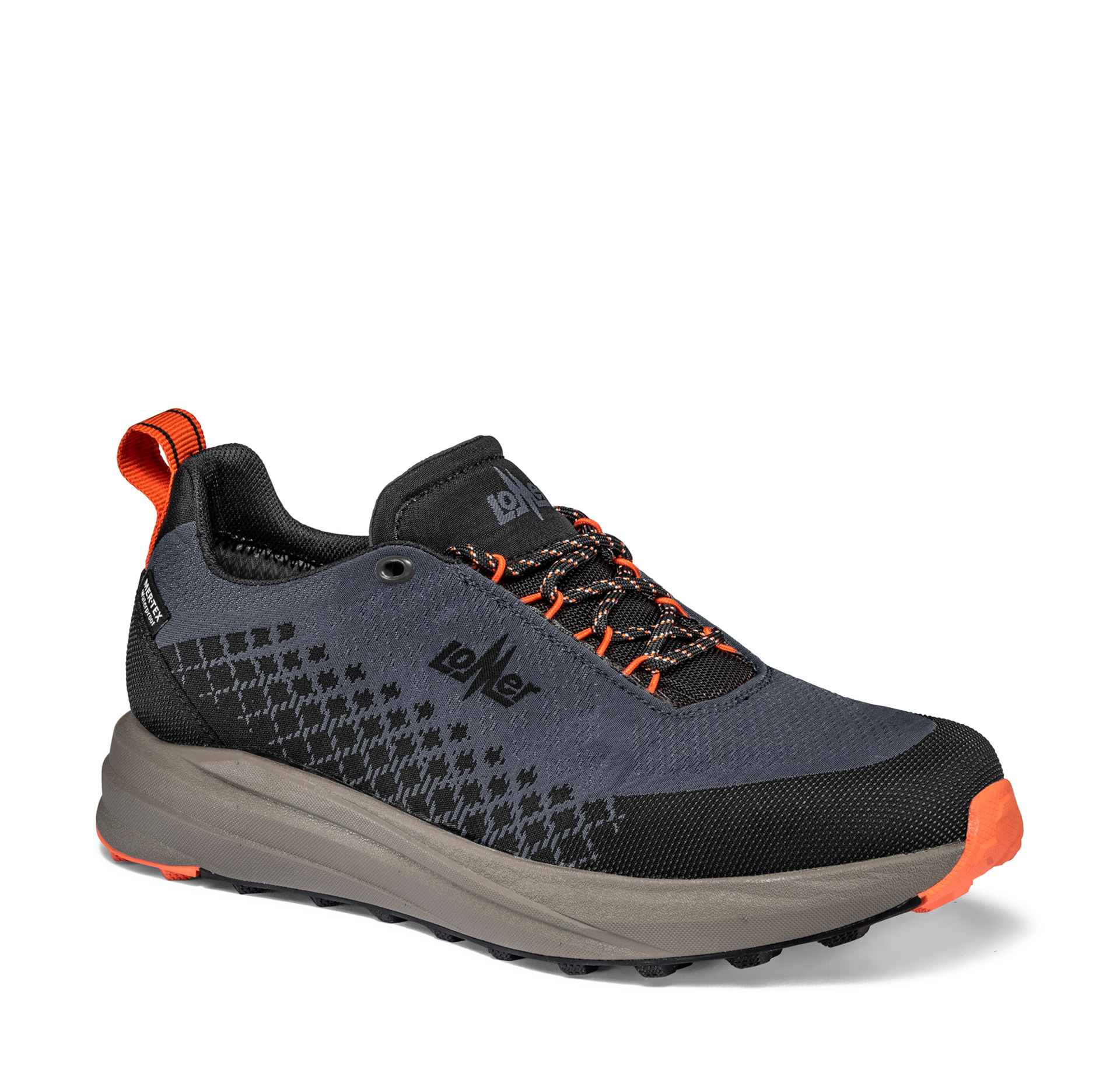 La tomaia realizzata interamente in tessuto tecnico "Made in Italy" offre massima resistenza all'abrasione e permette di inserire un ortesi plantare su misura. La fodera interna in Mer-Tex assicura impermeabilità e traspirazione ed il plantare interno aumenta ulteriormente il comfort della scarpa. La suola Vibram in gomma ed eva ultraleggera, offre un perfetto equilibrio di trazione e ammortizzazione, e la superficie d’appoggio più ampia evita distorsioni durante la camminata mentre il tacco svasato riduce l’impatto con il terreno.